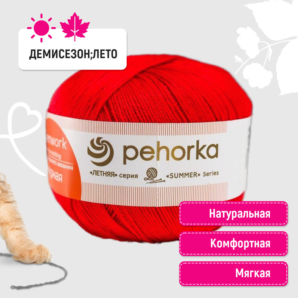 Пряжа для вязания Пехорка 'Ажурная' 50г, 280м (100% мерсеризованный хлопок) (88 красный мак), 10 мотков