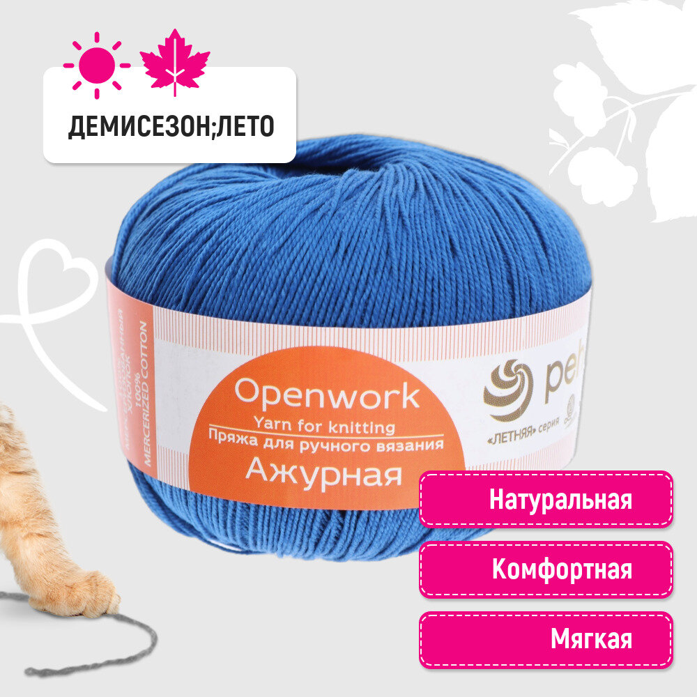 СохранитьПряжа Ажурная (Пехорка), василек - 26, 100% мерсеризованный хлопок, 10 мотков, 50 г., 280 м. интересное: