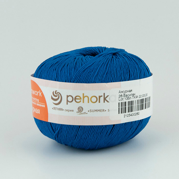 Пряжа Пехорка Pehorka Ажурная средняя, хлопок мерсеризованный 100%, цвет 026, василек, 10 шт. по 50 г, 280 м