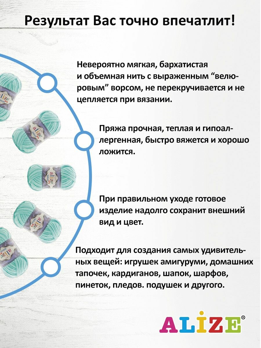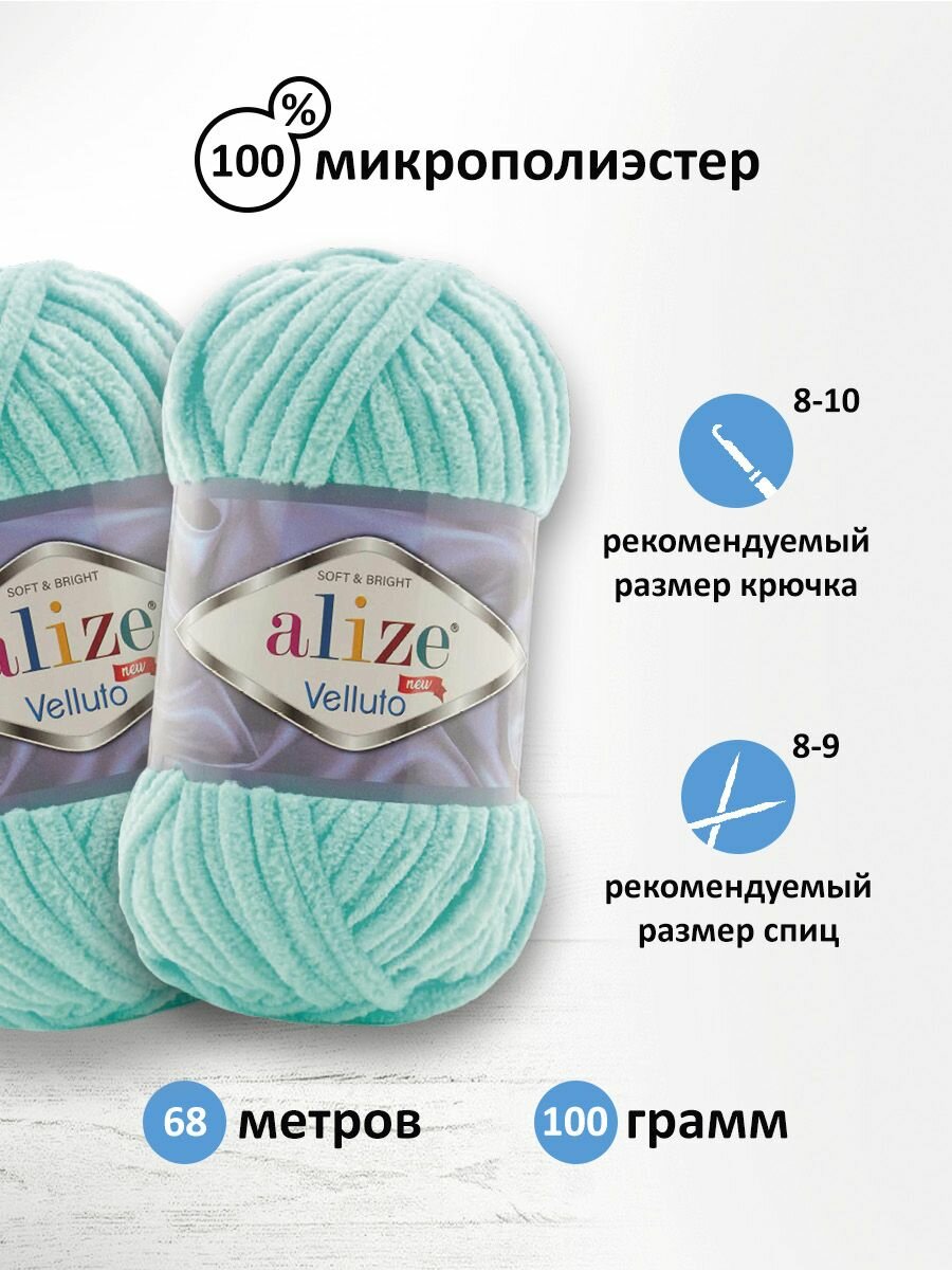 Пряжа Alize Velluto светло-бирюзовый (19), 100%микрополиэстер, 68м, 100г, 5шт