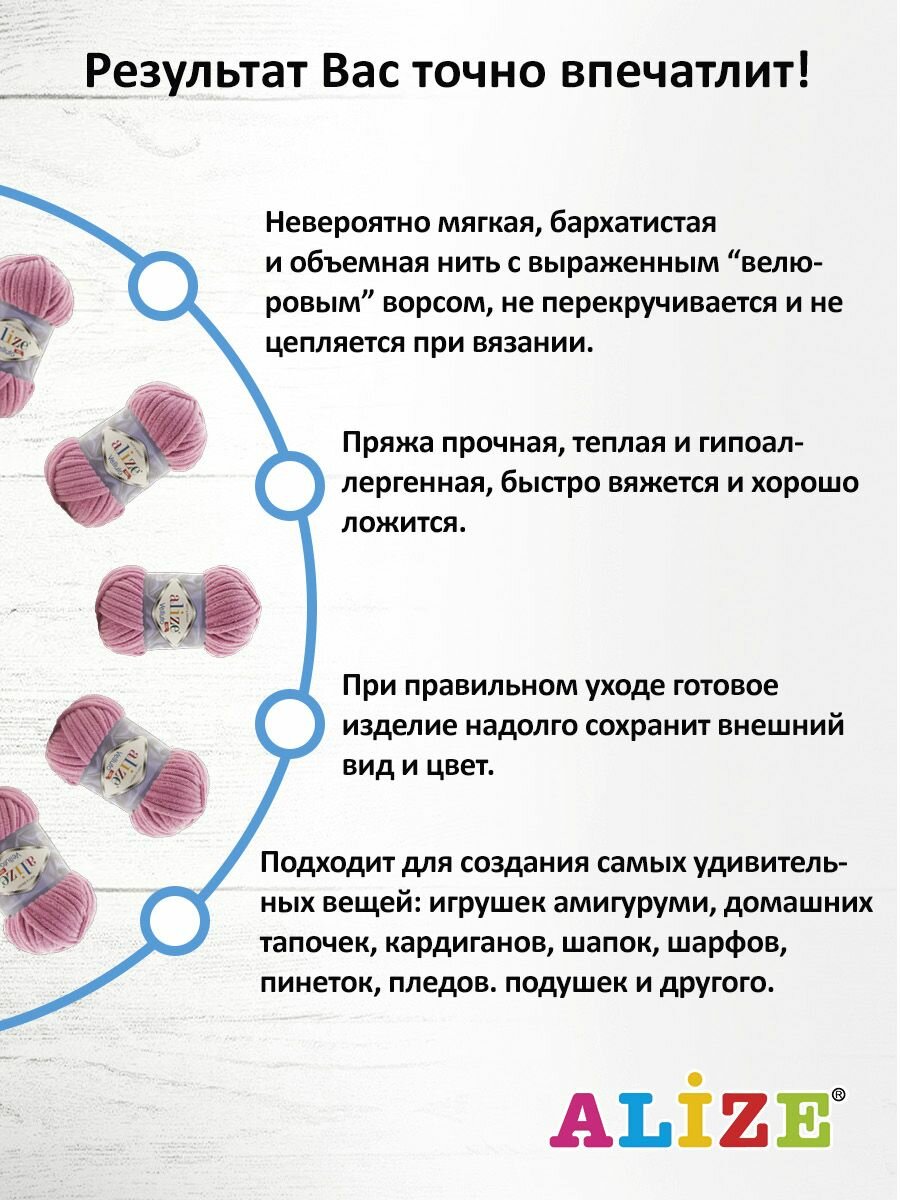Пряжа для вязания ALIZE 'Velluto', 100г, 68м (100% микрополиэстер) (550 бархат), 5 мотков