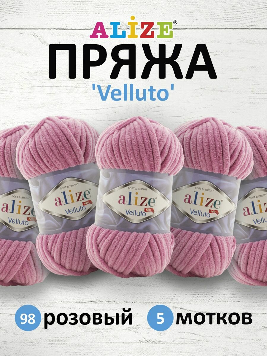 Пряжа ALIZE VELLUTO 5 шт 68 м 100 г цвет 98