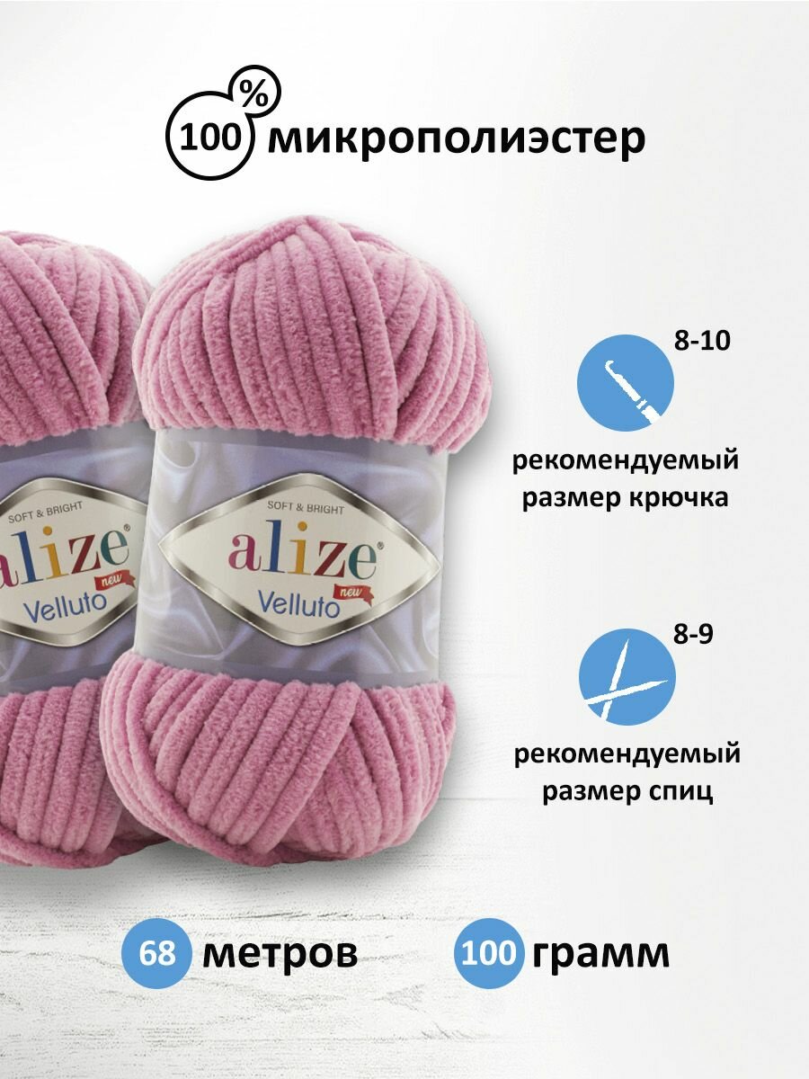 Пряжа ALIZE "Velluto", 100% микрополиэстер, 68 мх100 г, 121 розовый леденец