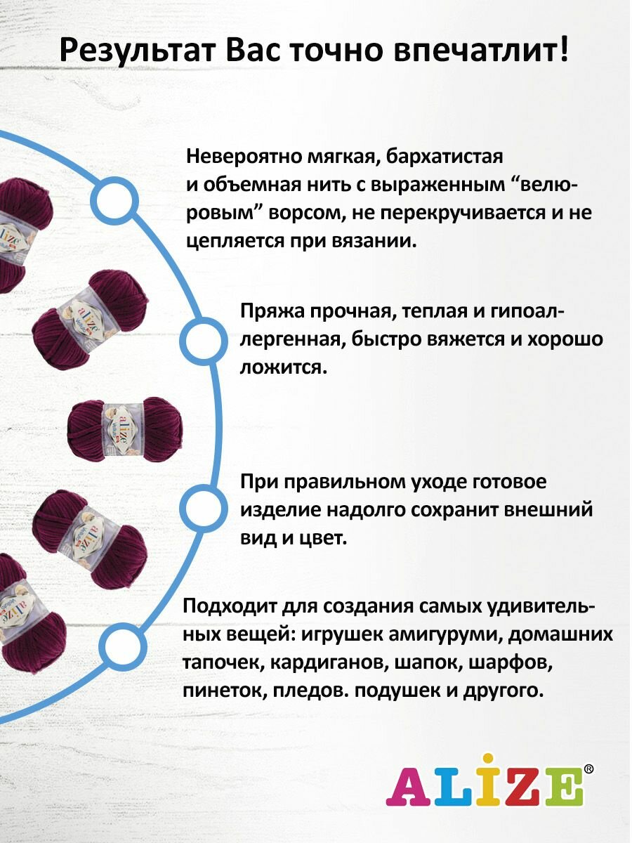 СохранитьПряжа Alize Velluto Ализе Веллюто 111 сливовый 5мотков/100г/68м интересное: