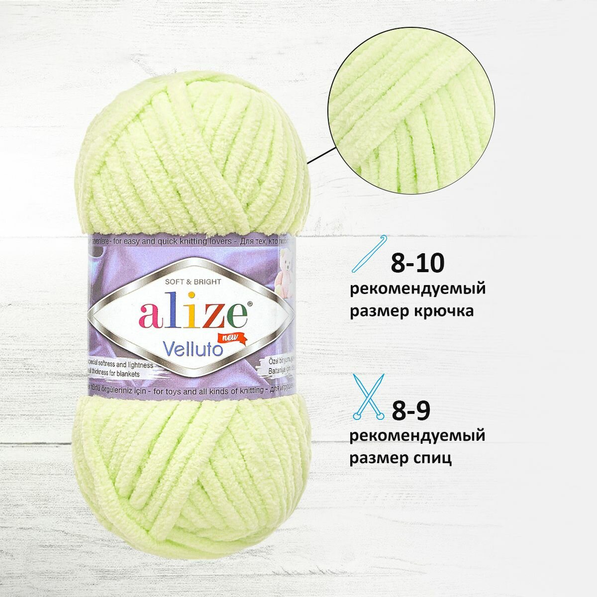 Пряжа VELLUTO (Alize), фисташка - 11, 100% микрополиэстер, 5 мотков, 100 г, 68 м.