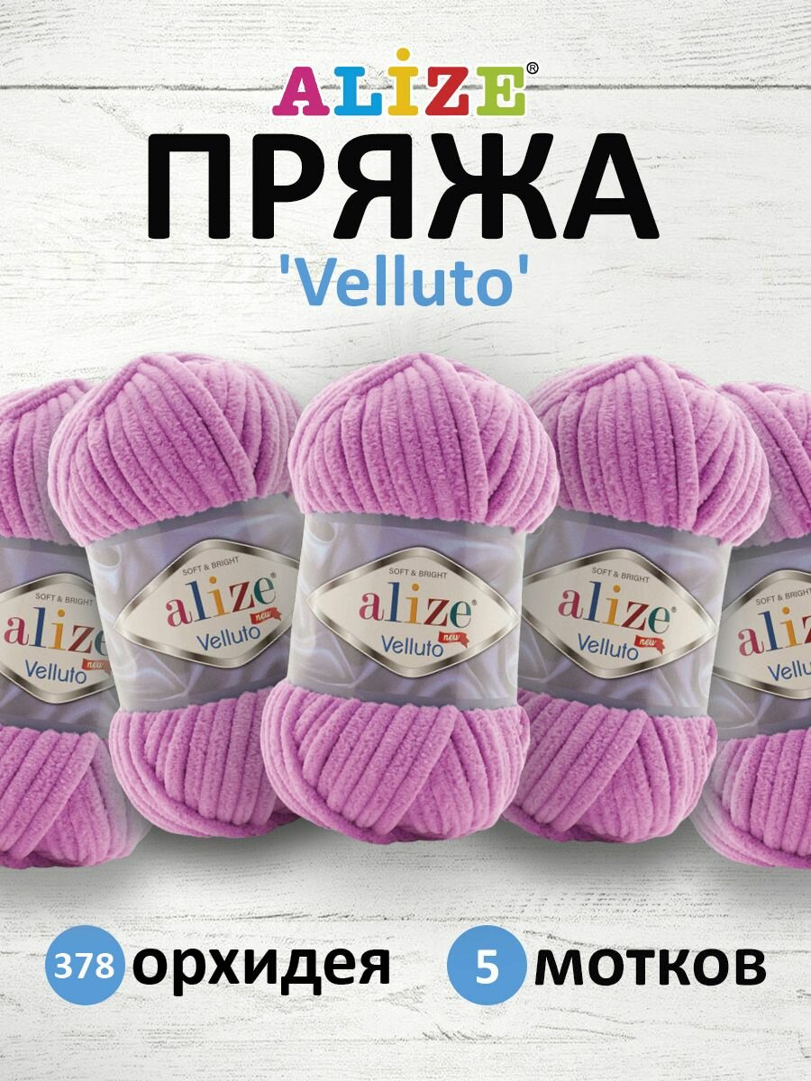 Пряжа Alize Velluto (Ализе Веллюто) - 1 моток 378 орхидея 100% микрополиэстер 68м/100г