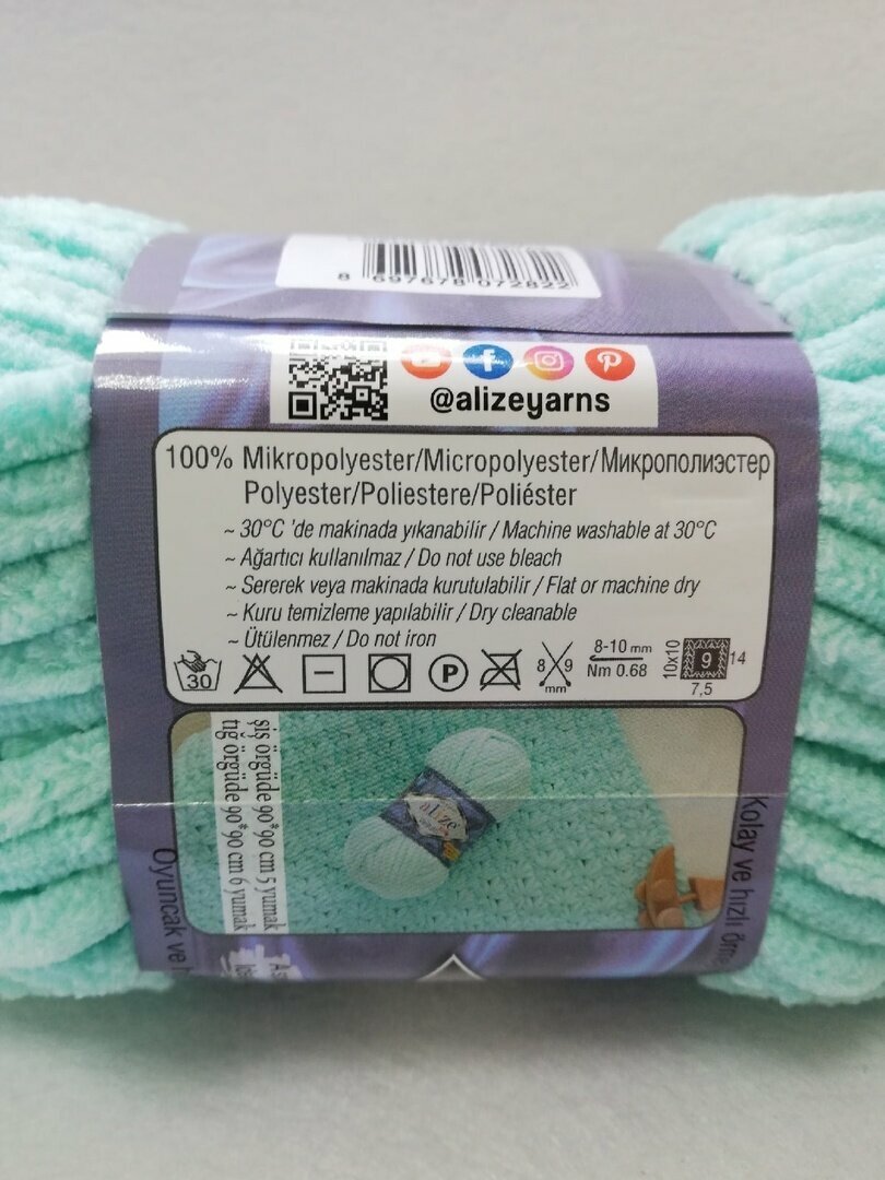 Пряжа Alize Velluto (Веллюто) - 5 мотков Цвет: 464 мята 100% микрополиэстер 100г 68м