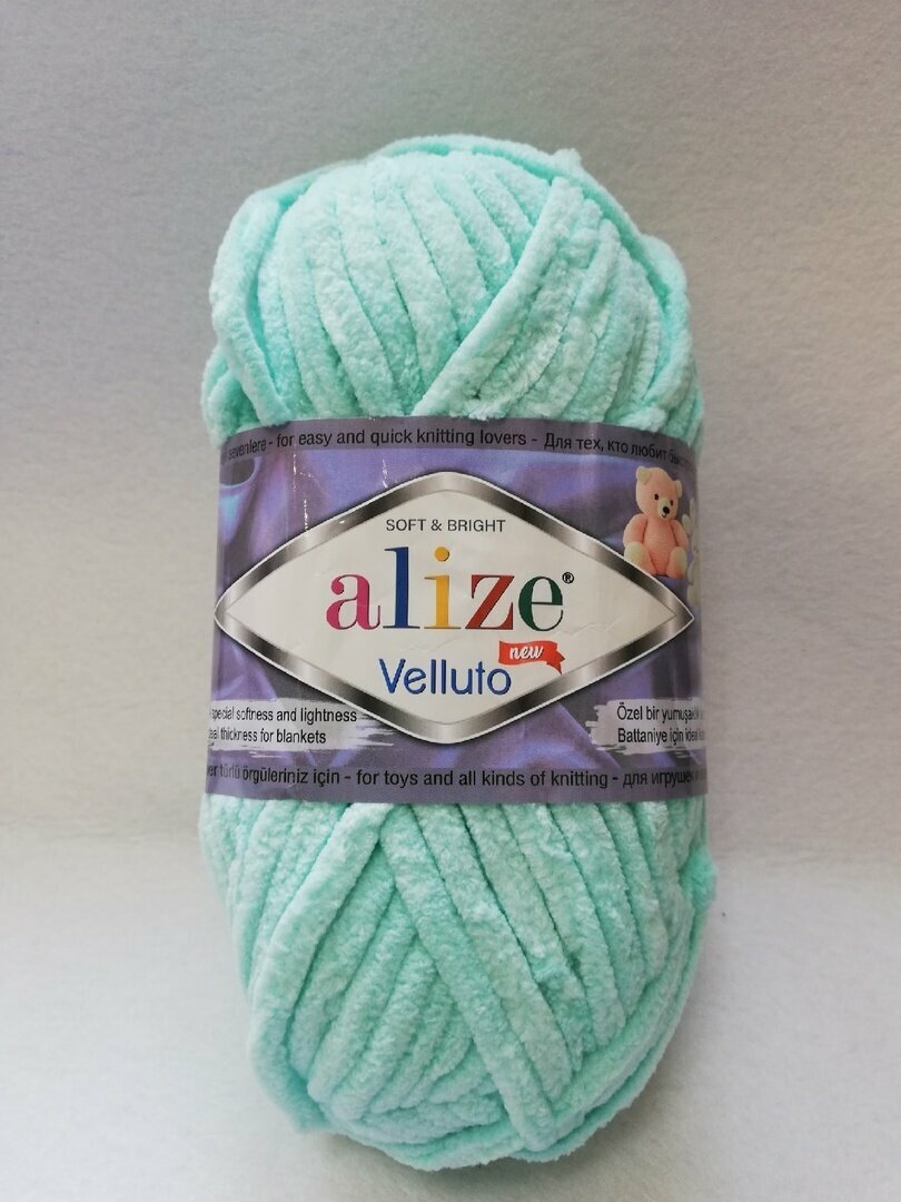 Пряжа VELLUTO (Alize), св. бирюза - 490, 100% микрополиэстер, 5 мотков, 100 г, 68 м.