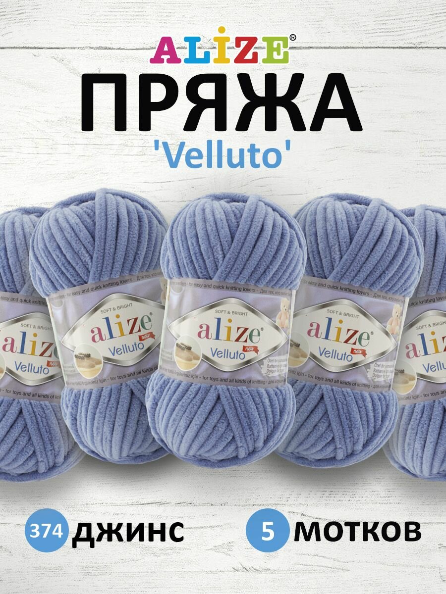 Пряжа VELLUTO (Alize), джинс - 374, 100% микрополиэстер, 5 мотков, 100 г, 68 м.