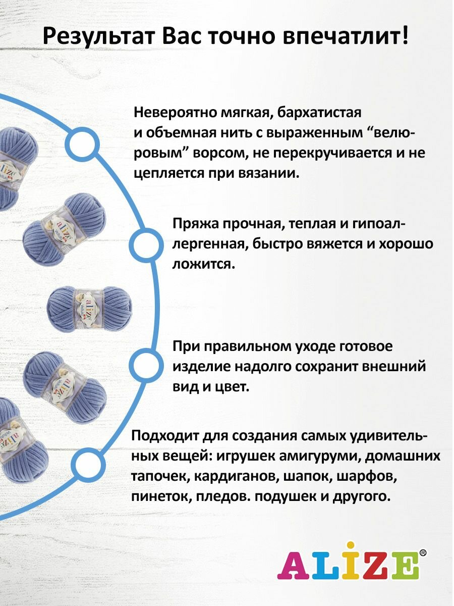 СохранитьПряжа для вязания Alize 'Velluto', 100г, 68м (100% микрополиэстер) (374 джинс), 5 мотков интересное: