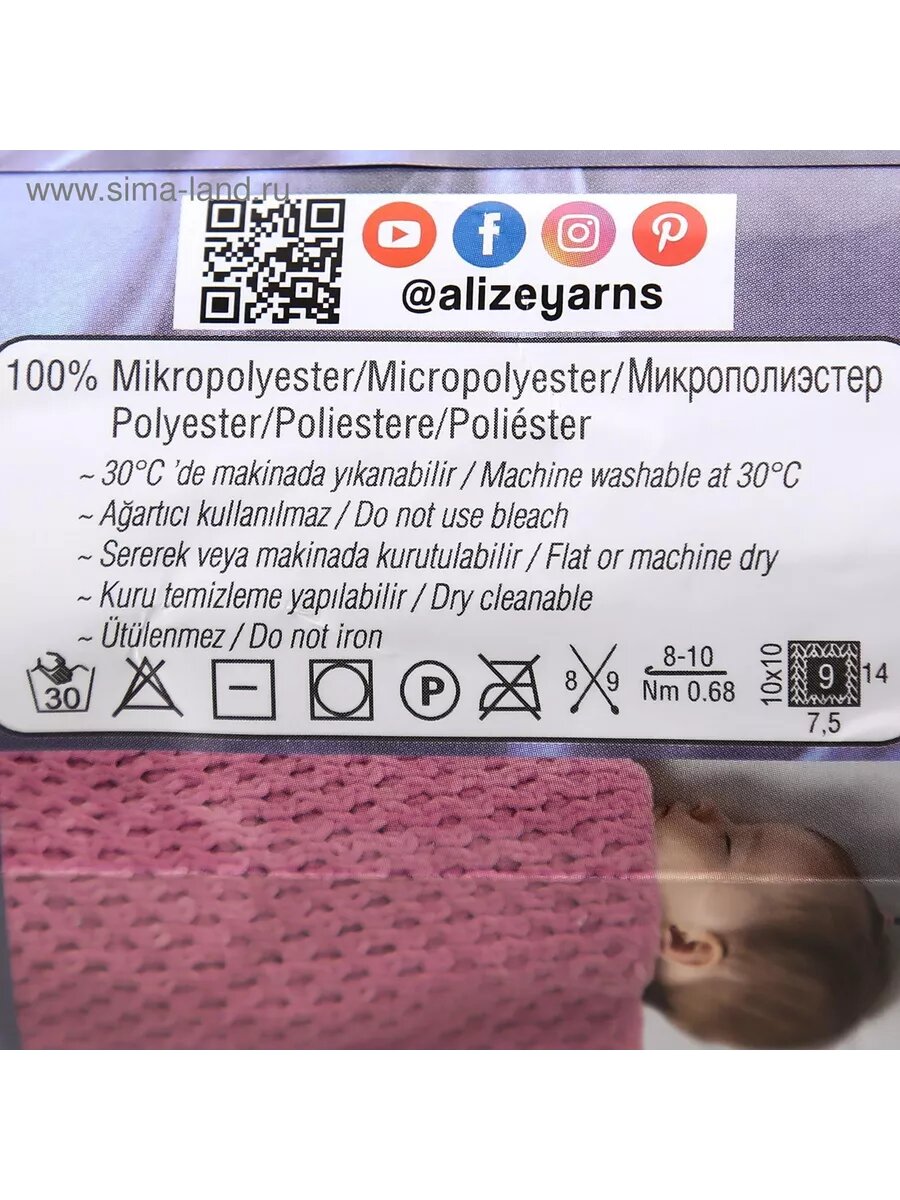 Пряжа ALIZE "Velluto", 100% микрополиэстер, 68 мх100 г, 121 розовый леденец