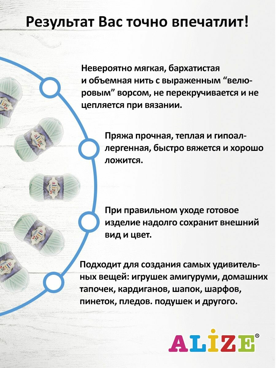 Пряжа Alize Velluto мята (464), 100%микрополиэстер, 68м, 100г, 5шт