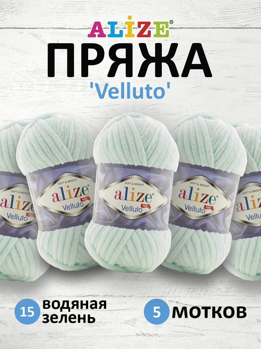 Пряжа Alize Velluto Ализе Веллюто 15 водяная зелень микрополиэстер 100% 5мотков/100г/68м