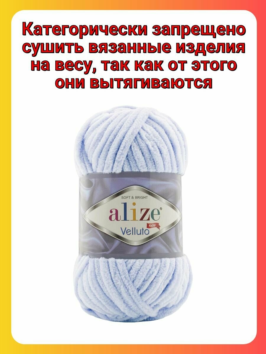 Пряжа для вязания плюшевая Alize Velluto, цвет 218 светло-голубой, 100г, 68м, 5шт/упак