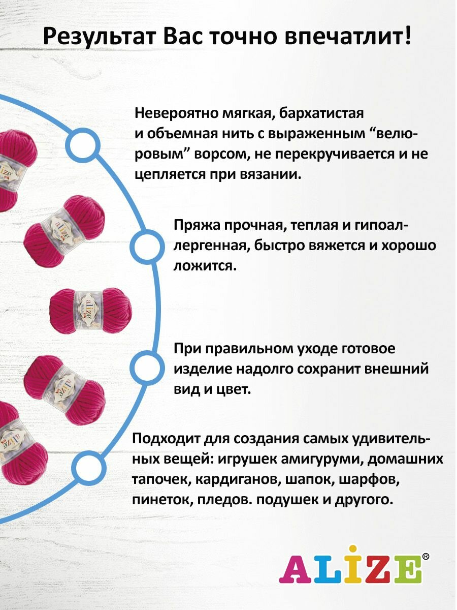 СохранитьПряжа Alize Velluto 798 бугенвиллия, 100 г, 68 м, 5 штук интересное: