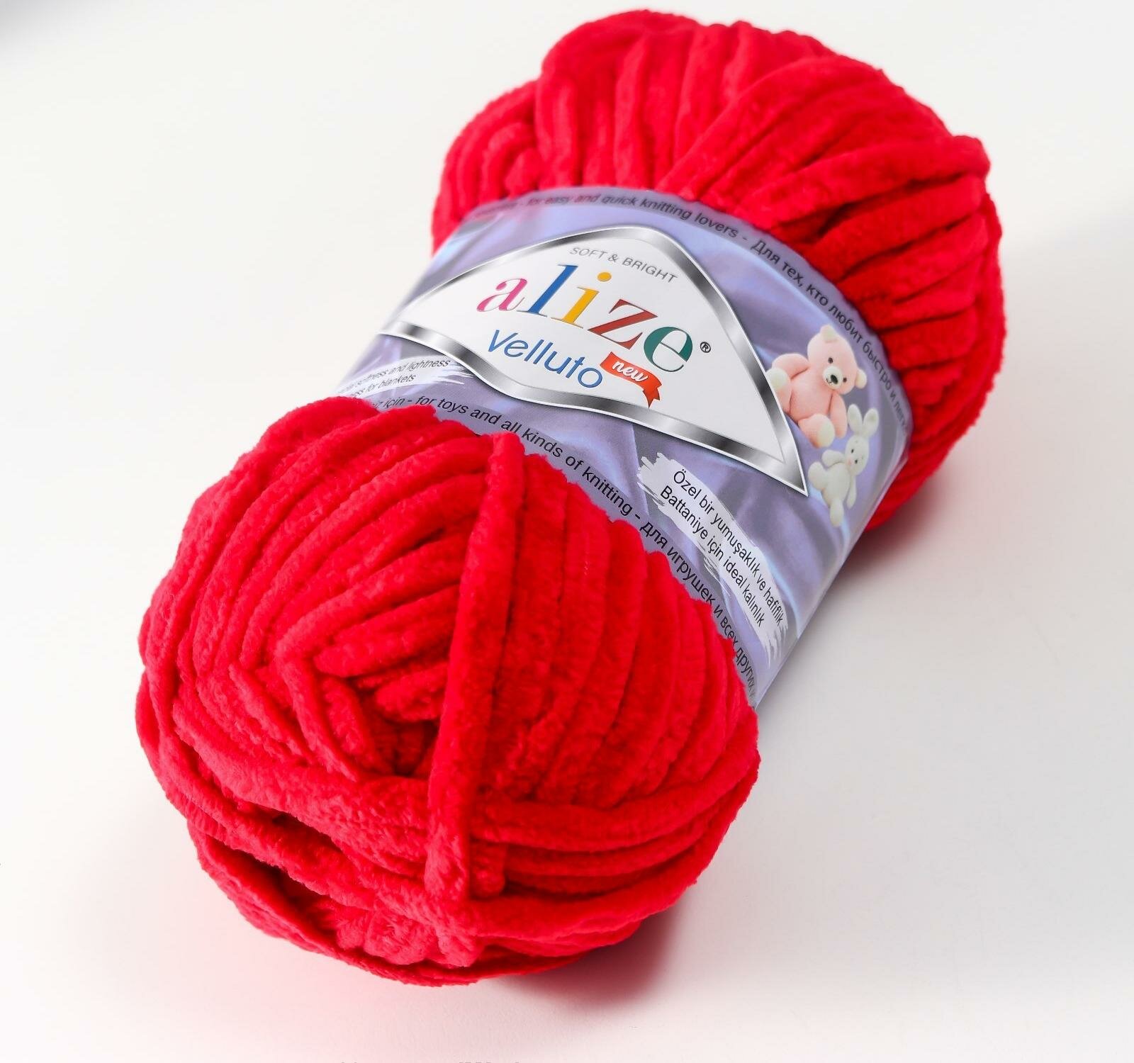 Пряжа Alize Velluto (Ализе Веллюто) - 1 моток 56 красный 100% микрополиэстер 68м/100г