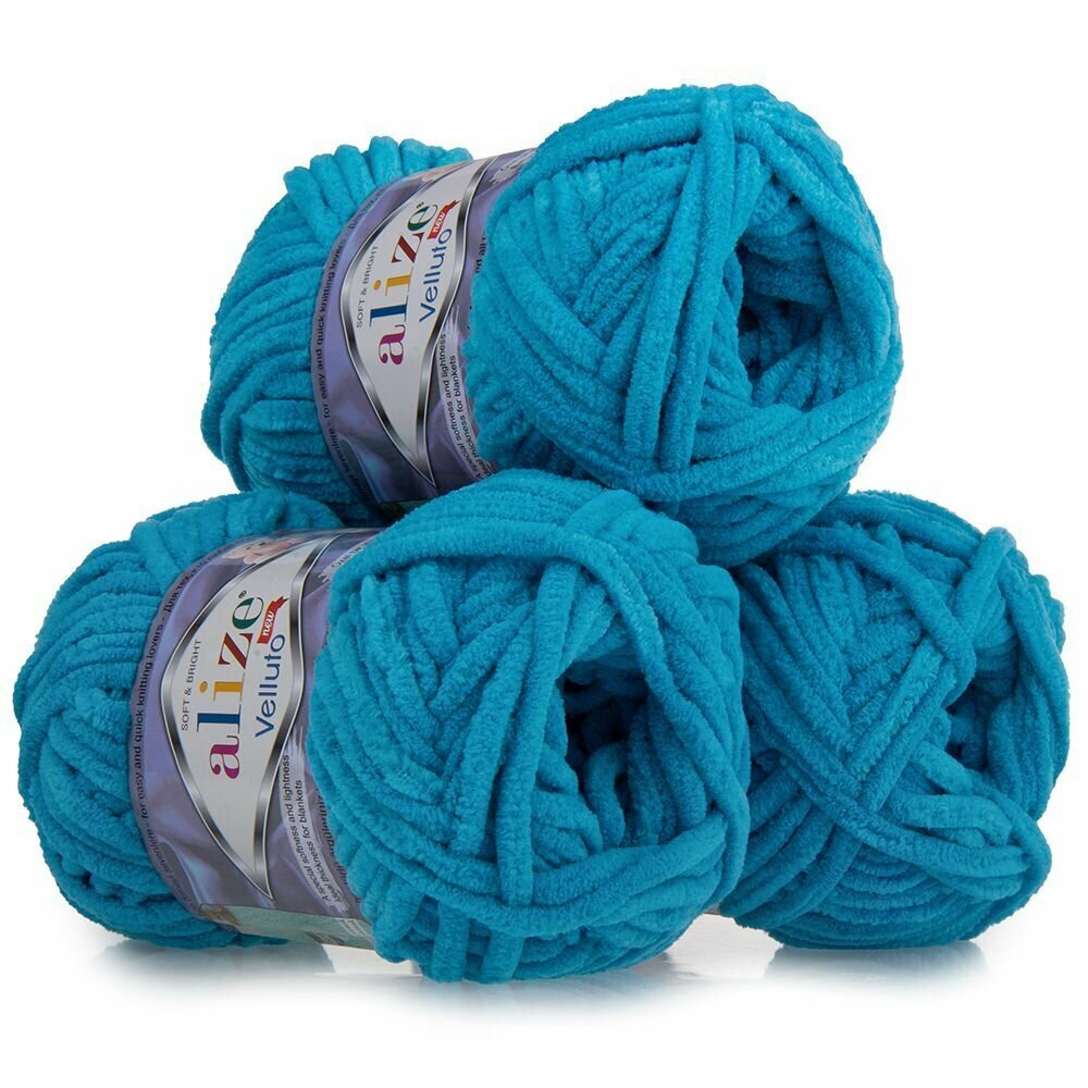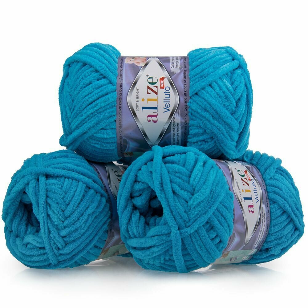 Купить Пряжа Alize Velluto бирюзовый (16), 100%микрополиэстер, 68м, 100г, 3шт