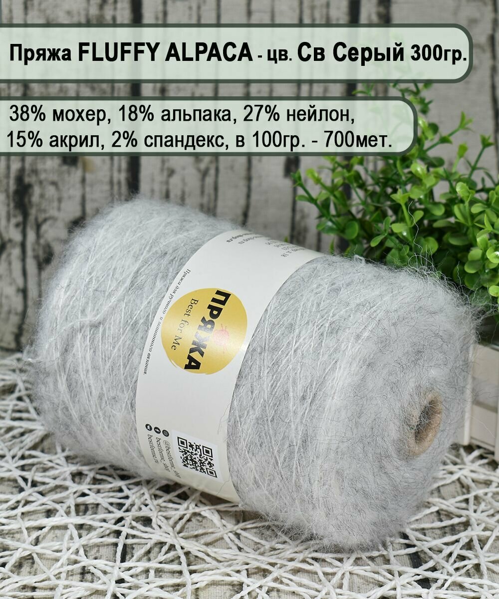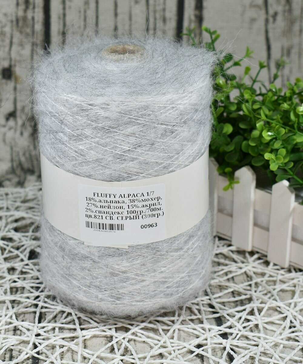 Пряжа на бобине FLUFFY ALPACA -18% альпака, 38% мохер.., 100гр./700м. цв.821 СВ. серый (вес 300гр.) интересное: