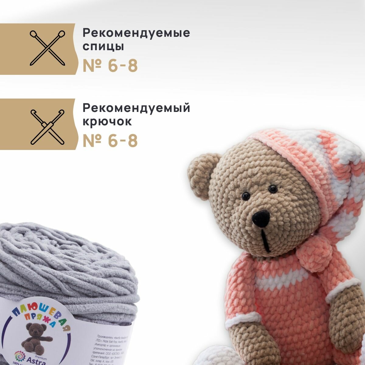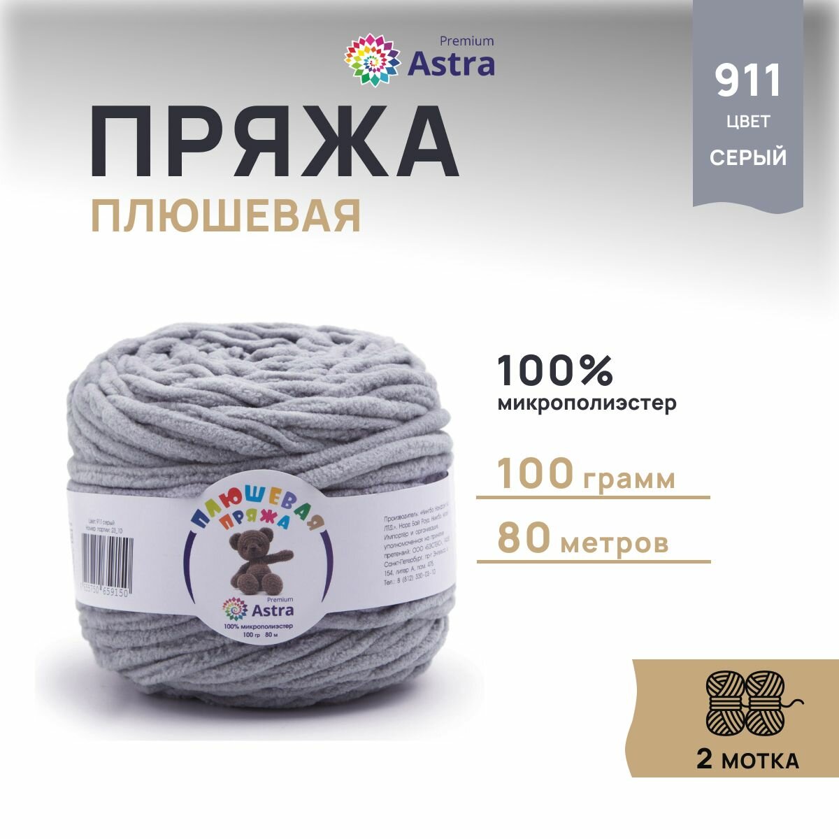 Пряжа для вязания Astra Premium 'Плюшевая' 100г, 80м (100% микрополиэстер) (911 серый), 2 мотка