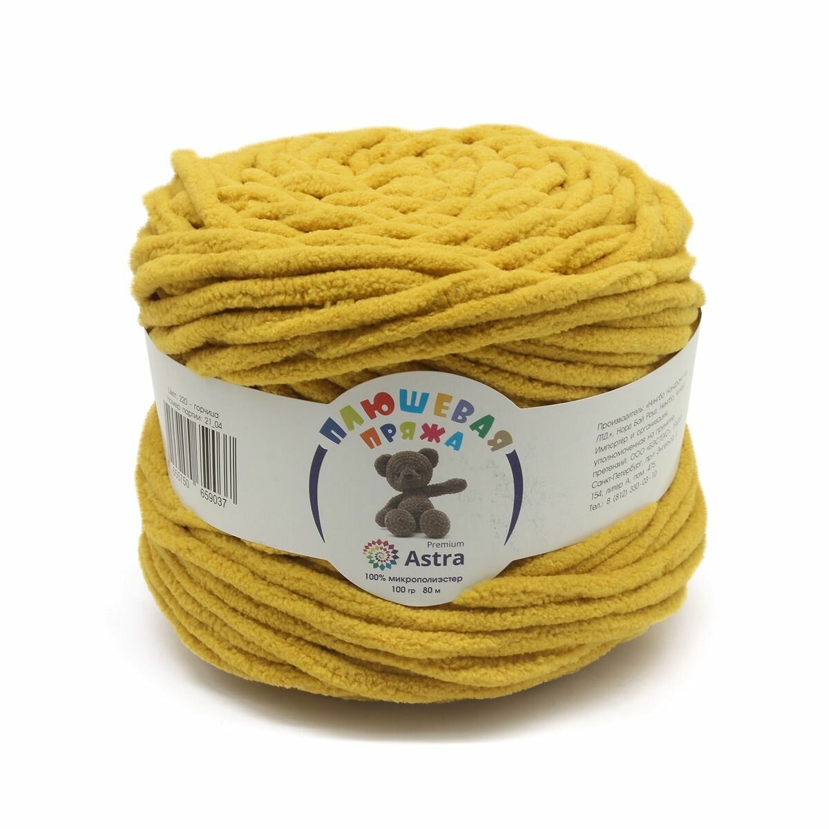 Пряжа для вязания Astra Premium 'Плюшевая' 100г, 80м (100% микрополиэстер) (220 горчица), 2 мотка
