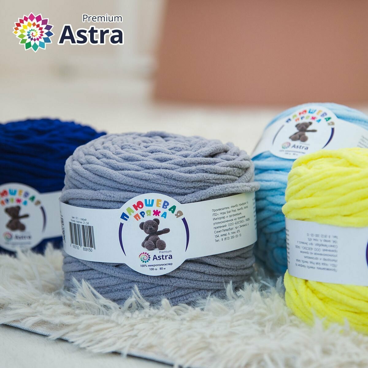 Пряжа для вязания Astra Premium 'Плюшевая', 100г, 80м (100% микрополиэстер) (911 серый), 2 мотка