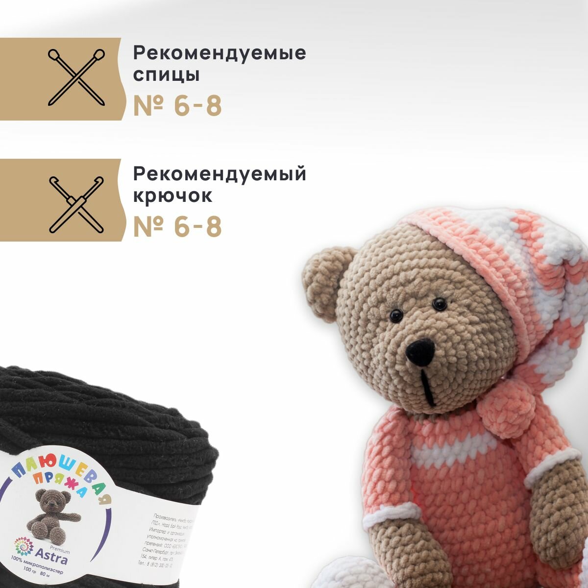 Пряжа для вязания Astra Premium 'Плюшевая' 100г, 80м (100% микрополиэстер) (999 черный), 2 мотка