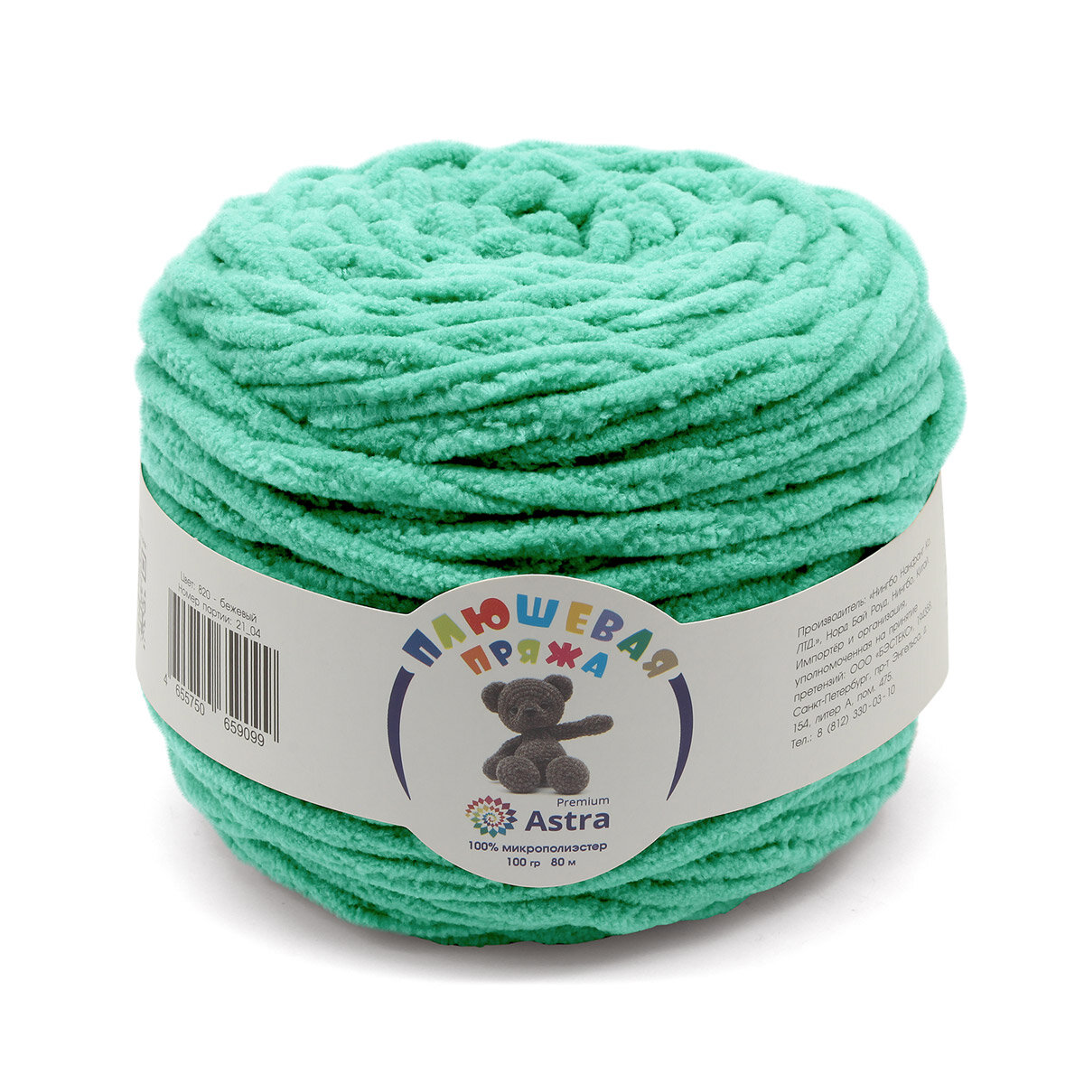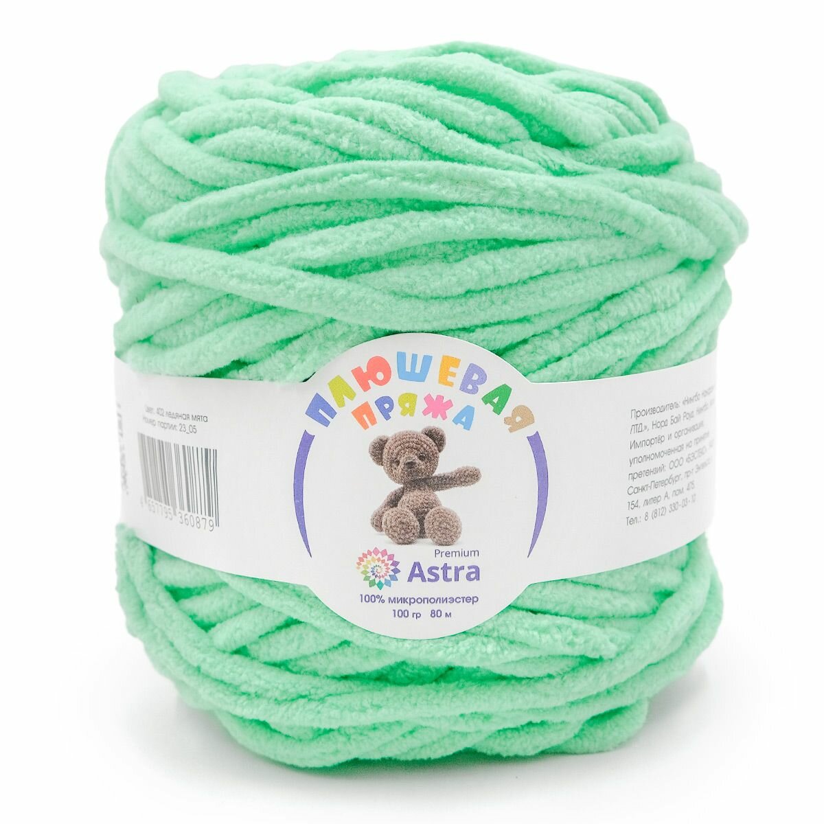 Пряжа Astra Premium "Плюшевая", 100 гр 80 м, 100% микрополиэстер, 402 ледяная мята, 2 шт