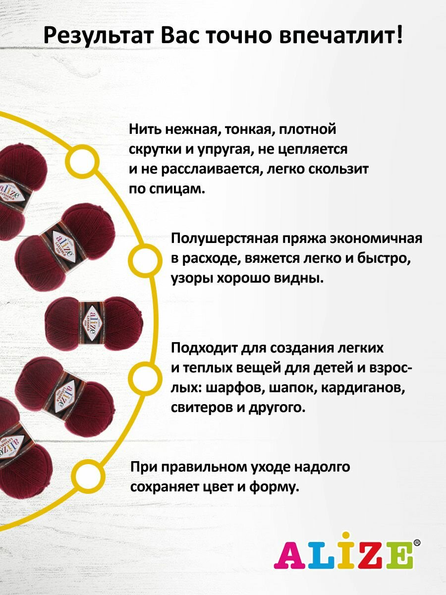 СохранитьПряжа ALIZE "Lanagold fine", 100 гр 390 м, 49% шерсть, 51% акрил, 57 бордовый, 5 шт интересное: