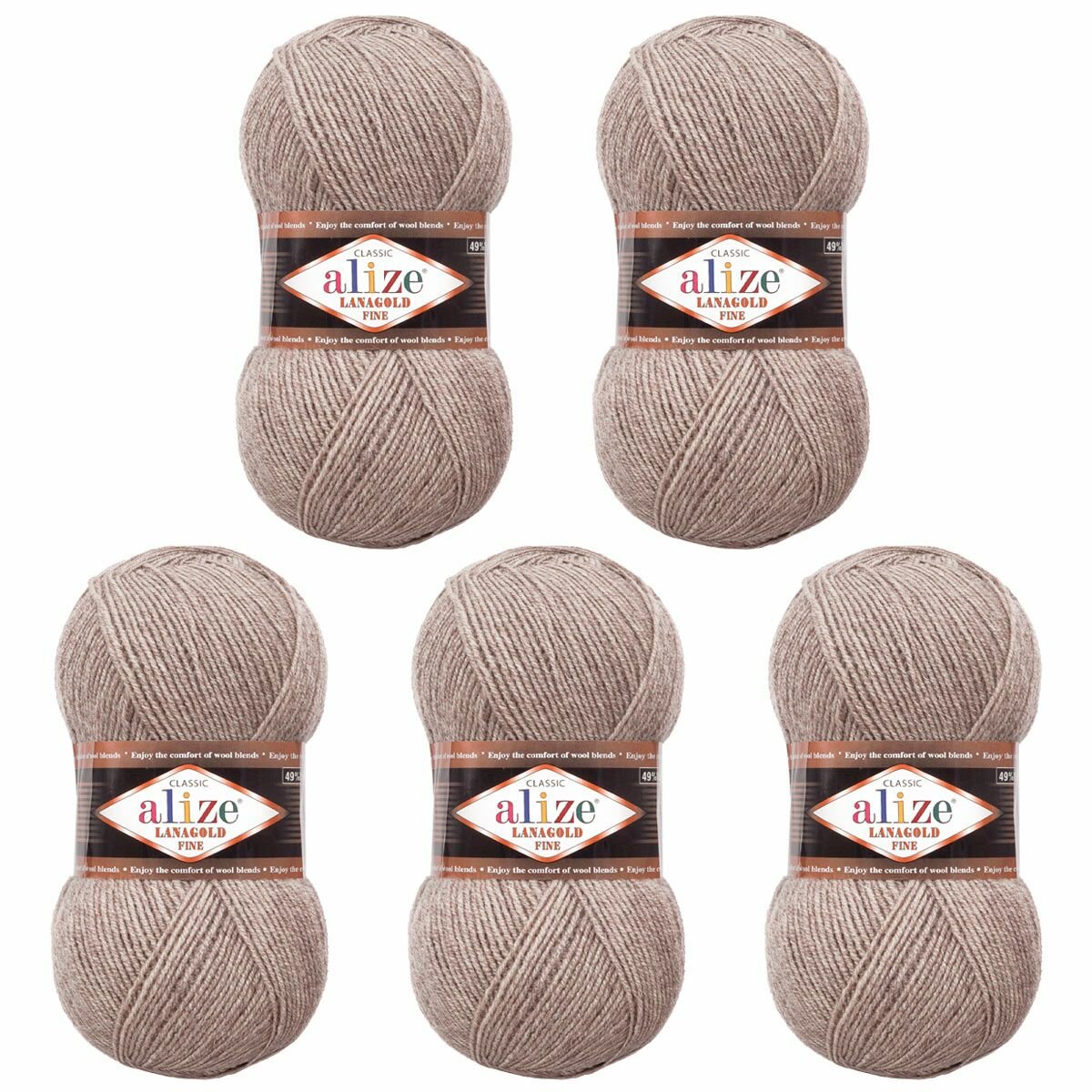 Пряжа для вязания ALIZE LANAGOLD FINE: 5 (бежевый), 5 шт 390 м 100 г, 49% шерсть 51% акрил