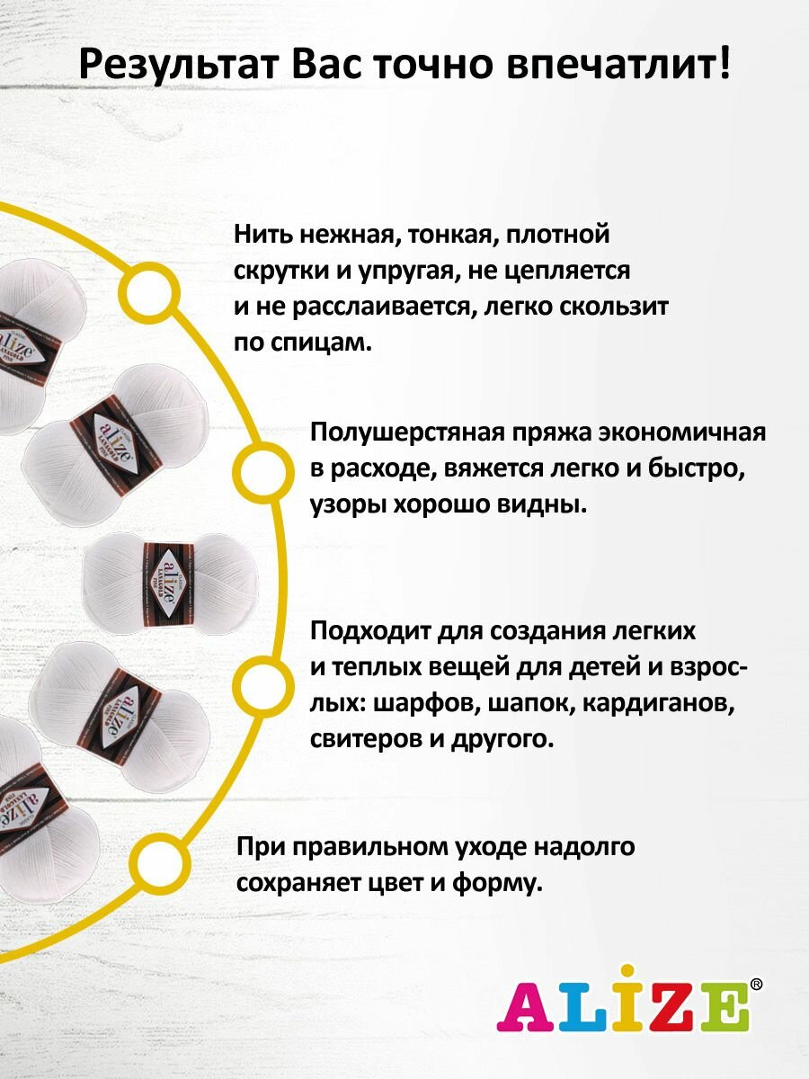 СохранитьПряжа ALIZE "Lanagold fine", 100 гр 390 м, 49% шерсть, 51% акрил, 55 белый, 5 шт интересное: