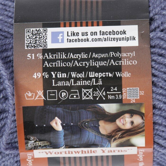 Пряжа Alize Lanagold Fine (Ланаголд Файн) - 1 моток Цвет: 851 барвинок 49% шерсть, 51% акрил 100г 390м