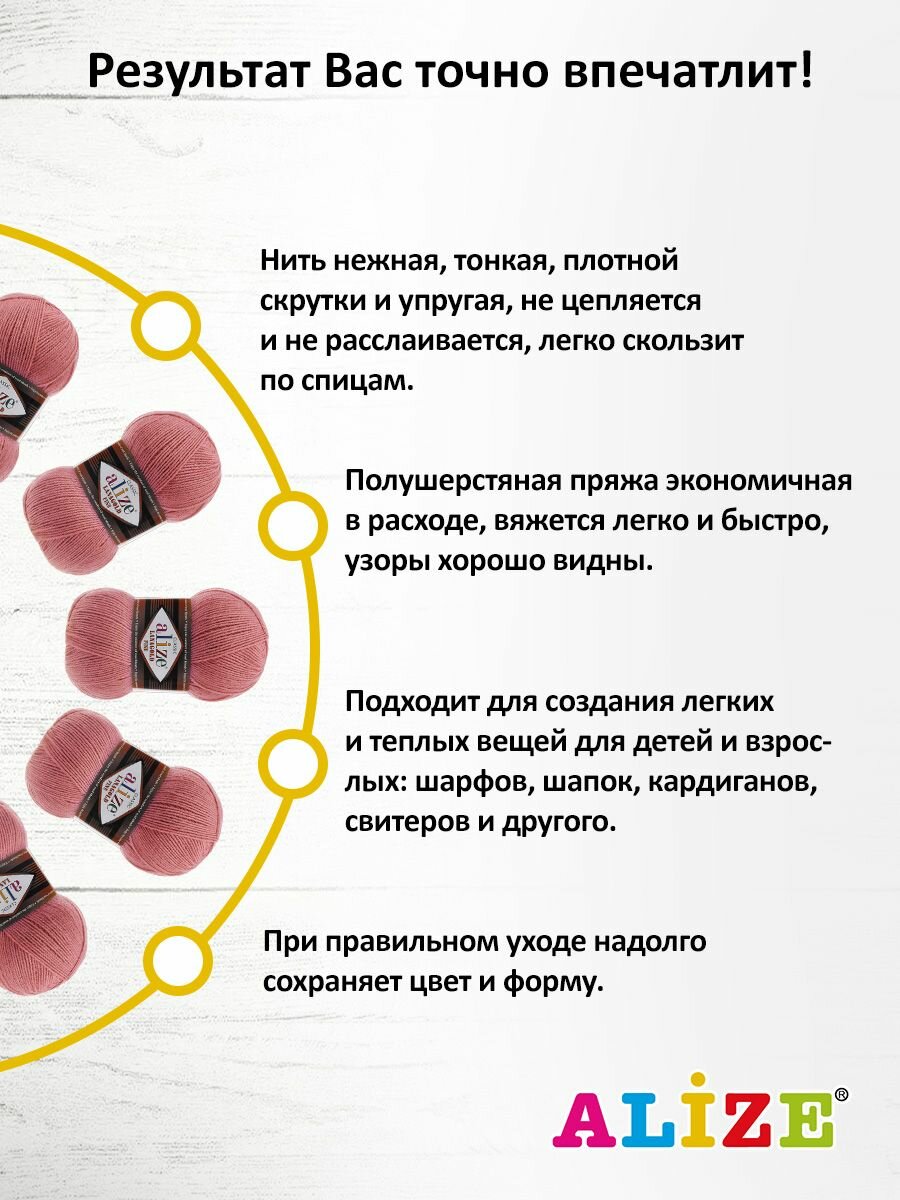СохранитьПряжа для вязания ALIZE 'Lanagold fine', 100г, 390м (49% шерсть, 51% акрил) (173 Вялая Роза), 5 мотков интересное: