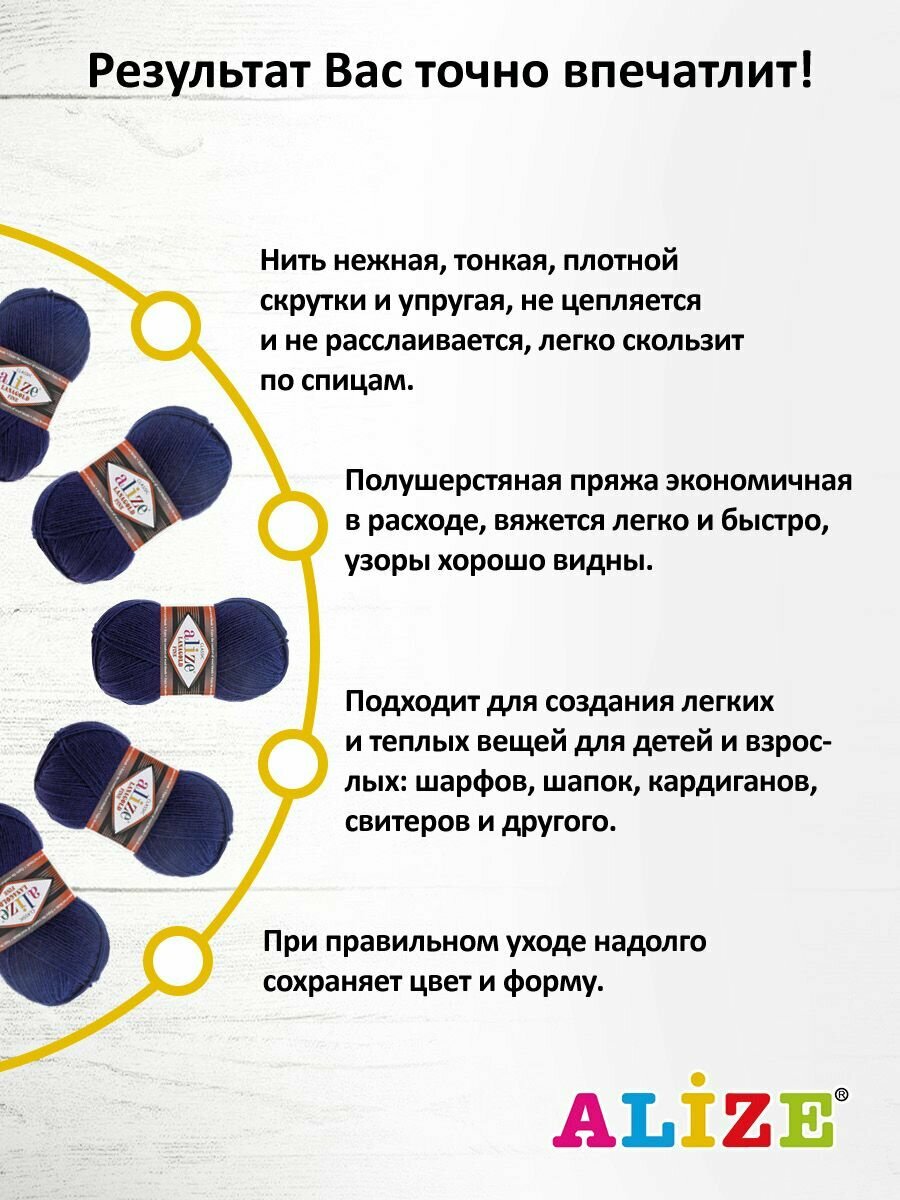 СохранитьПряжа для вязания ALIZE 'Lanagold fine', 100г, 390м (49% шерсть, 51% акрил) (58 тёмно-синий), 5 мотков интересное: