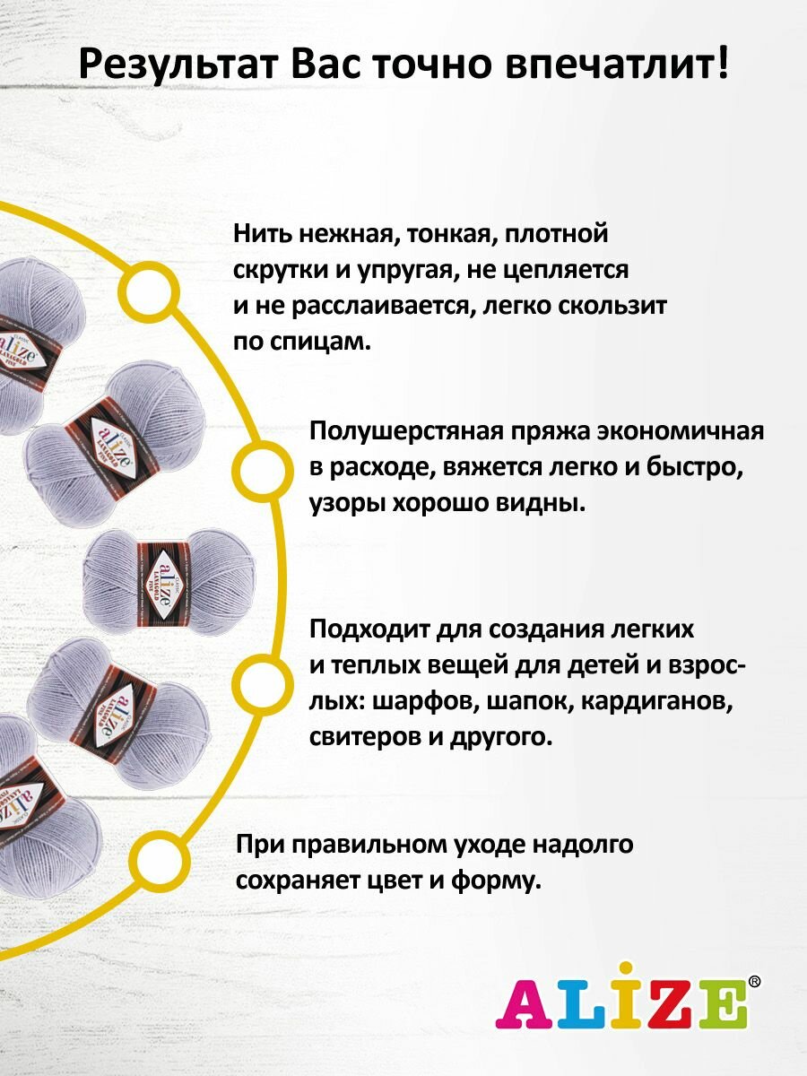 СохранитьПряжа для вязания ALIZE 'Lanagold fine', 100г, 390м (49% шерсть, 51% акрил) (200 светло-серый), 5 мотков интересное:
