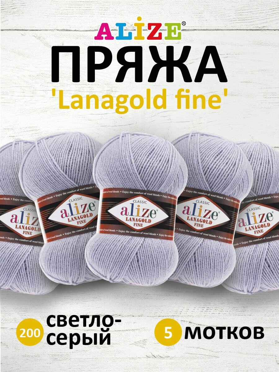 Купить Пряжа для вязания ALIZE 'Lanagold fine', 100г, 390м (49% шерсть, 51% акрил) (200 светло-серый), 5 мотков