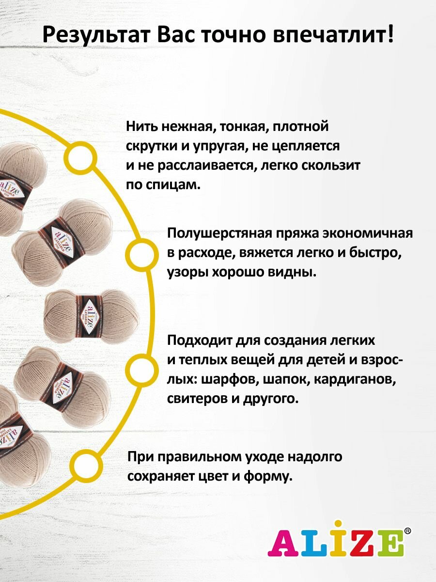 СохранитьПряжа Alize Lanagold Fine (Ализе Ланаголд Файн) - 5 мотков, 05 бежевый, 49% шерсть, 51% акрил 390м/100г интересное: