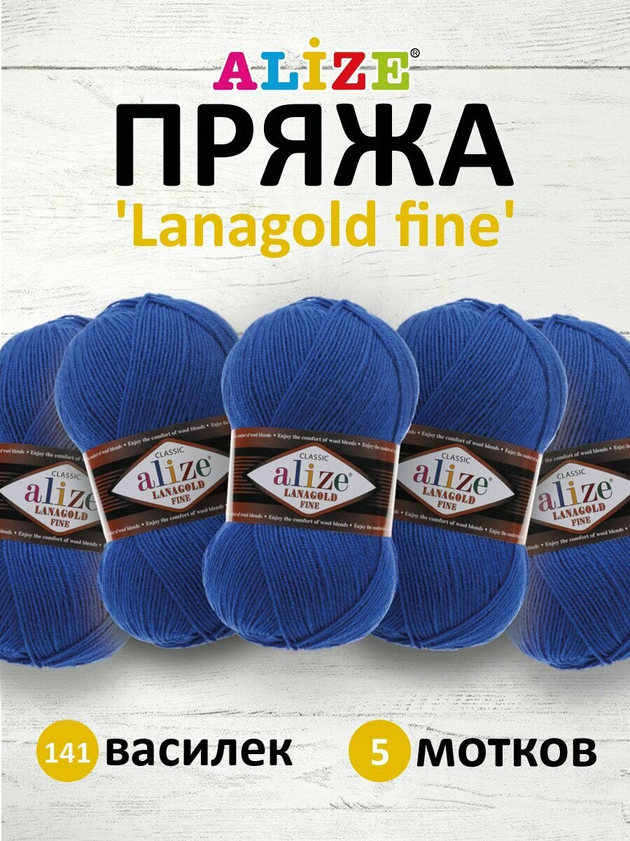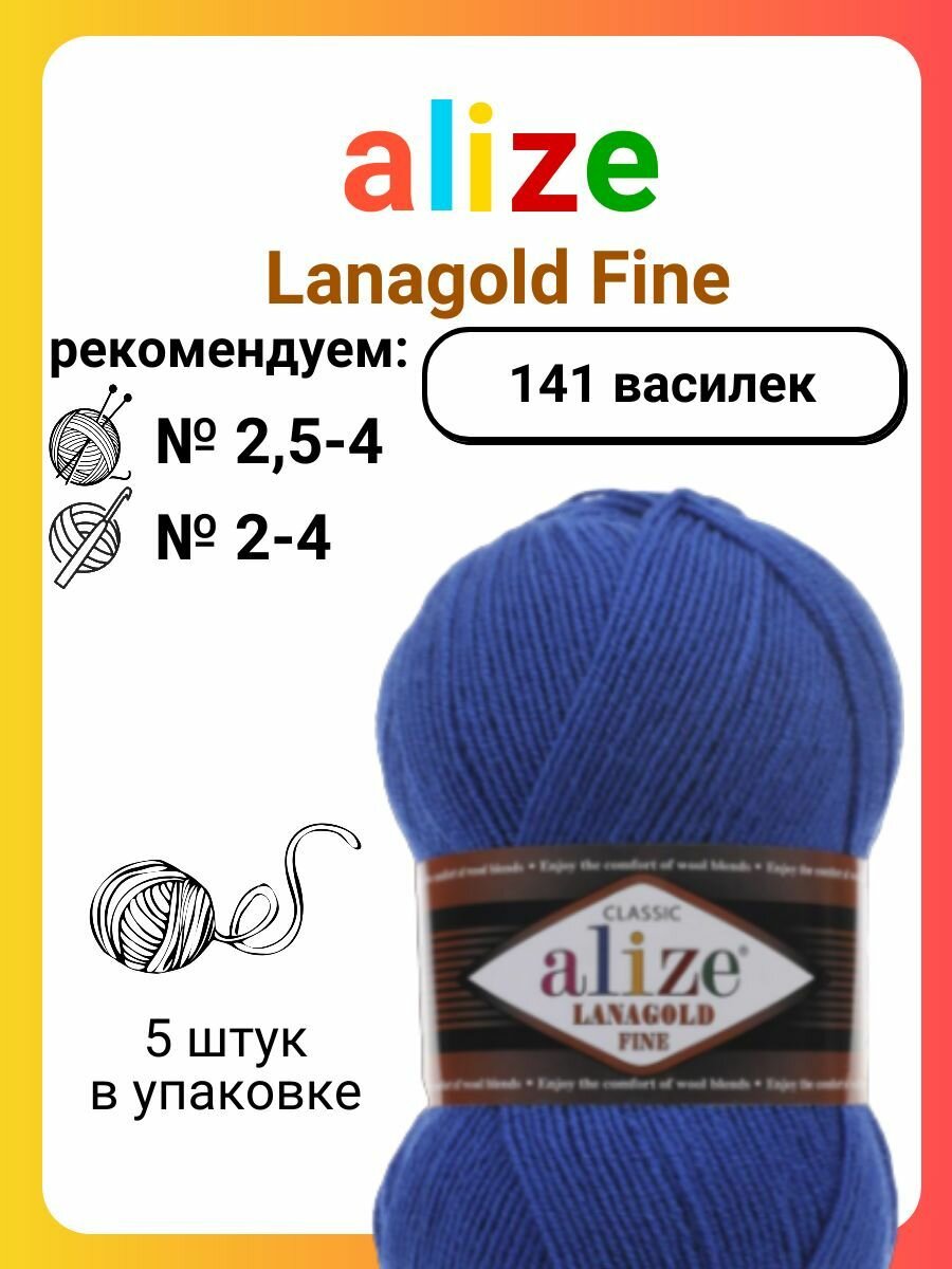 Купить Пряжа Alize Lanagold Fine (Ализе Ланаголд Файн) - 5 мотков, 141 василек, 49% шерсть, 51% акрил 390м/100г
