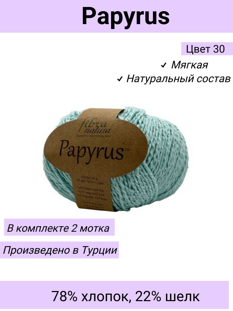 Пряжа Fibra Natura Papyrus цвет 229-19 Мятный / 2 шт 50гр 120м 78% хлопок 22% шелк / Фибра Натура Папирус