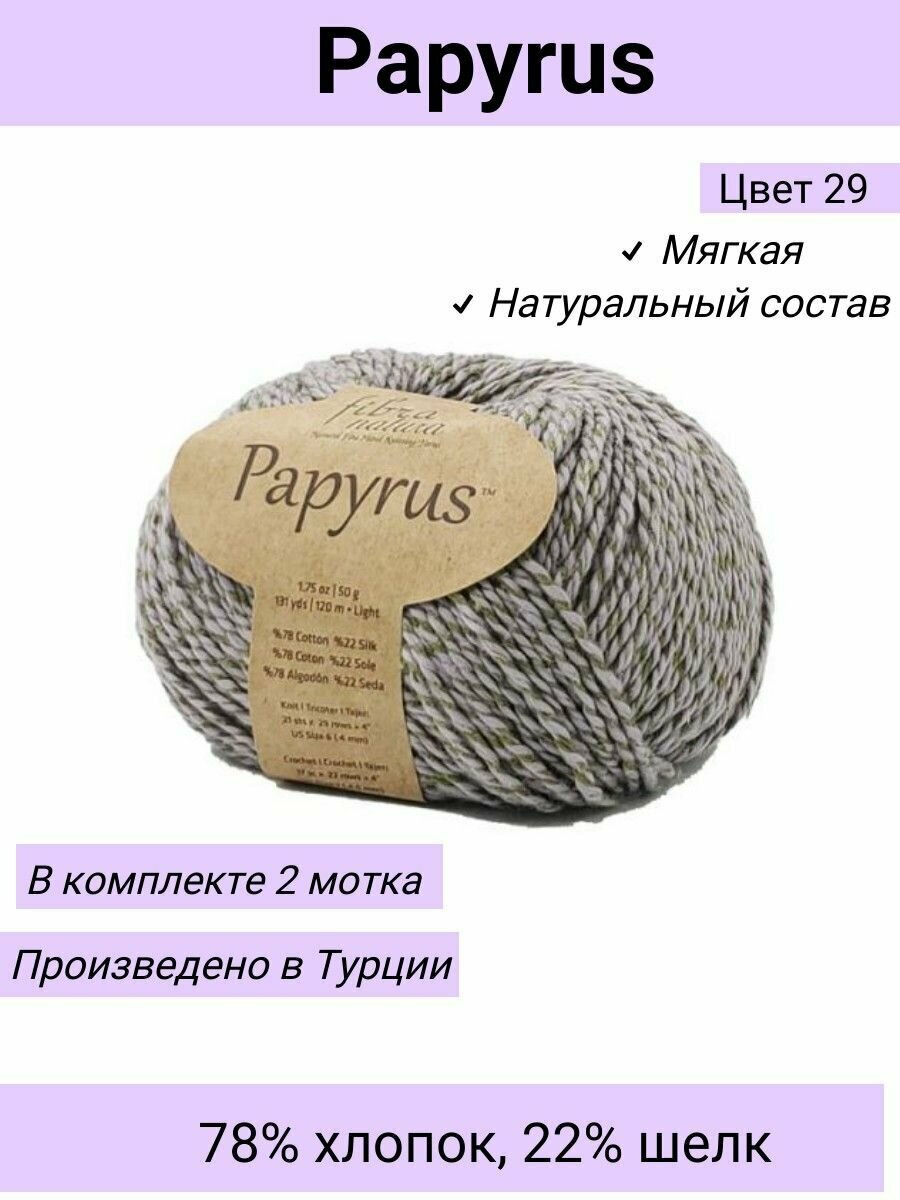 Пряжа Fibra Natura Papyrus цвет 229-25 Серебристый / 2 шт 50гр 120м 78% хлопок 22% шелк / Фибра Натура Папирус