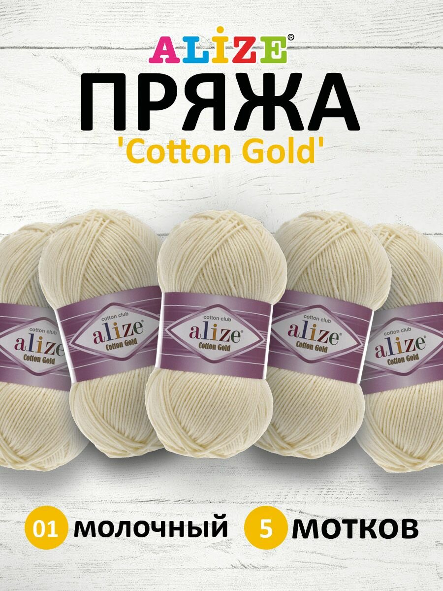 Купить Пряжа Alize Cotton Gold (01 молочный), 5 шт. по 100 г, Alize