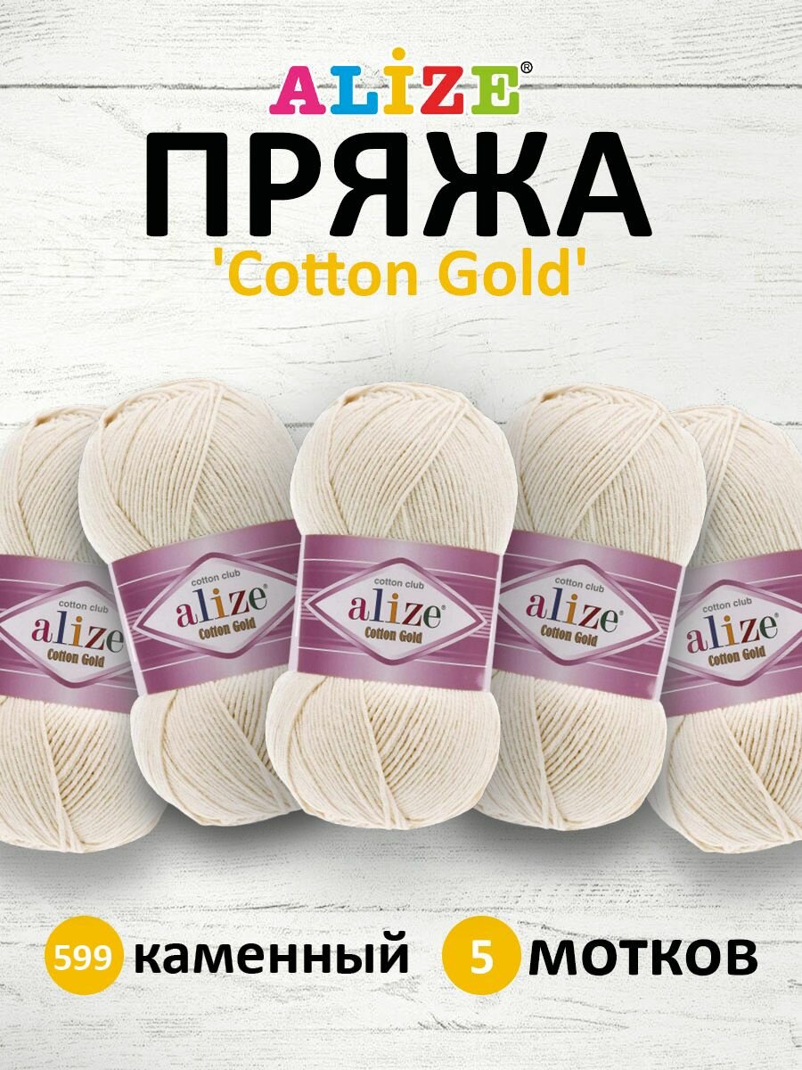 Купить Пряжа для вязания ALIZE 'Cotton gold', 100г, 330м (55% хлопок, 45% акрил), ТУ (599 каменный), 5 мотков
