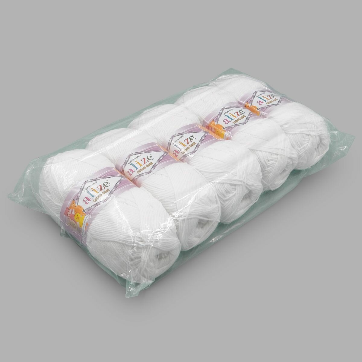 Купить Пряжа Alize Cotton Gold (Ализе Коттон Голд) - 5 мотков 55 белый 55% хлопок, 45% акрил 330м/100г