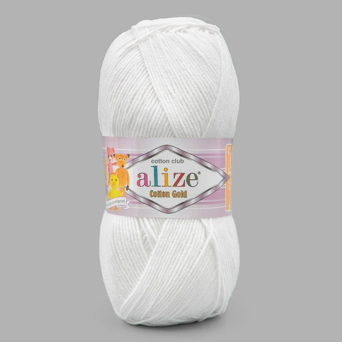 Пряжа Alize Cotton Gold белый (55), 55%хлопок/45%акрил, 330м, 100г, 1шт