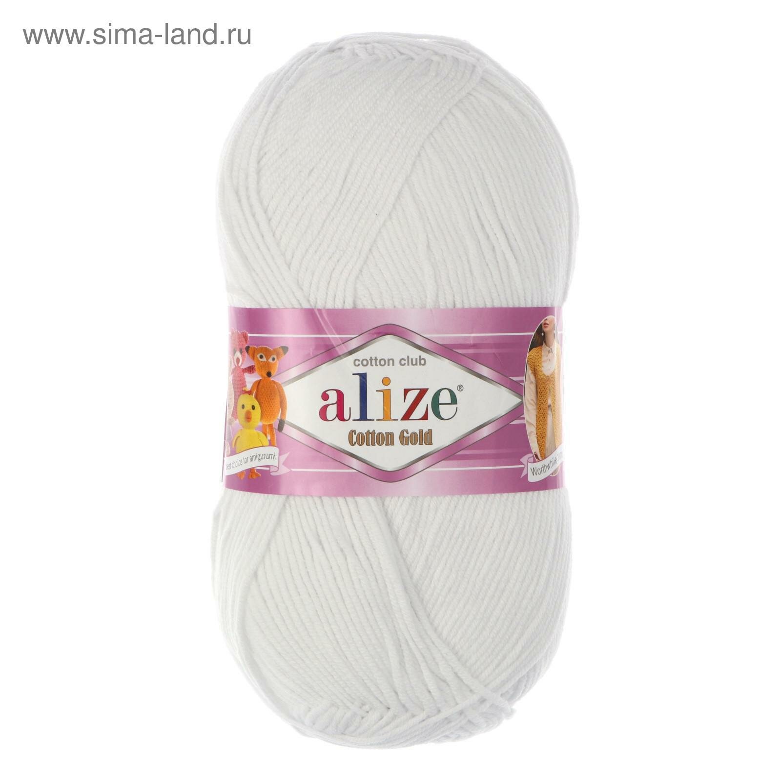 Купить Пряжа Alize Cotton Gold белый (55), 55%хлопок/45%акрил, 330м, 100г, 1шт