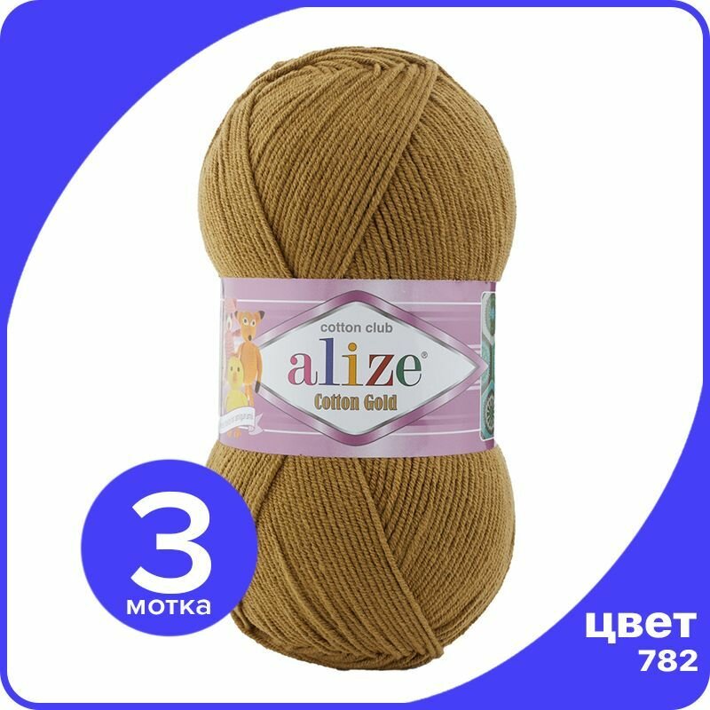 Купить Пряжа Alize Cotton Gold хаки (782), 55%хлопок/45%акрил, 330м, 100г, 3шт