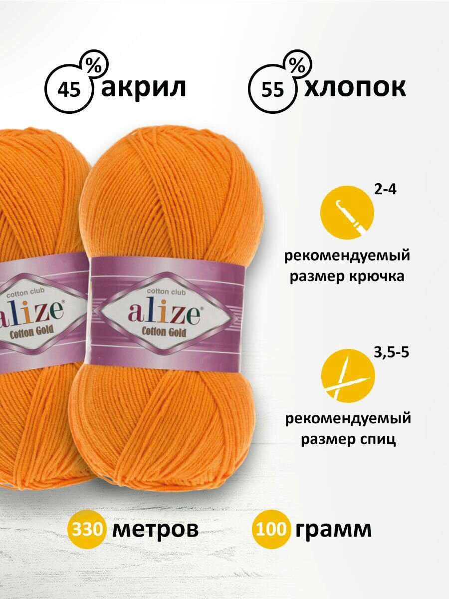 Пряжа ALIZE "Cotton Gold", 100 г, 330 м, 55% хлопок, 45% акрил, цвет 37 оранжевый, 5 мотков