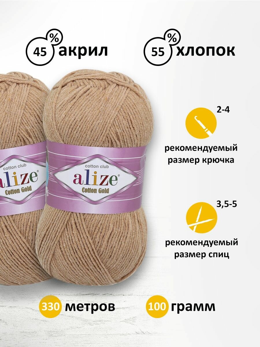 Пряжа Alize Cotton Gold светло-бежевый (67), 55%хлопок/45%акрил, 330м, 100г, 1шт