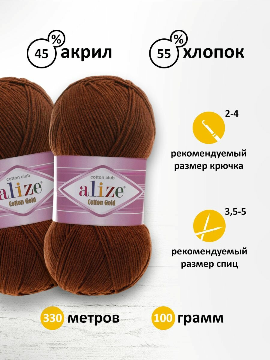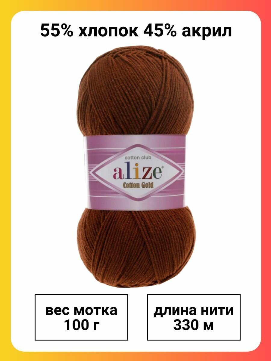 Купить Пряжа ALIZE "Cotton gold", 100 гр 330 м, 55% хлопок, 45% акрил, ТУ 690 черепичный, 5 шт