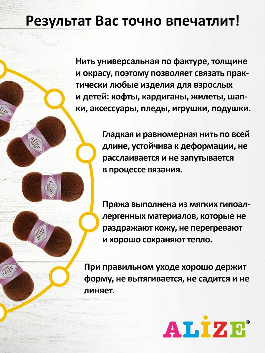 СохранитьПряжа ALIZE "Cotton gold", 100 гр 330 м, 55% хлопок, 45% акрил, ТУ 690 черепичный, 5 шт интересное: