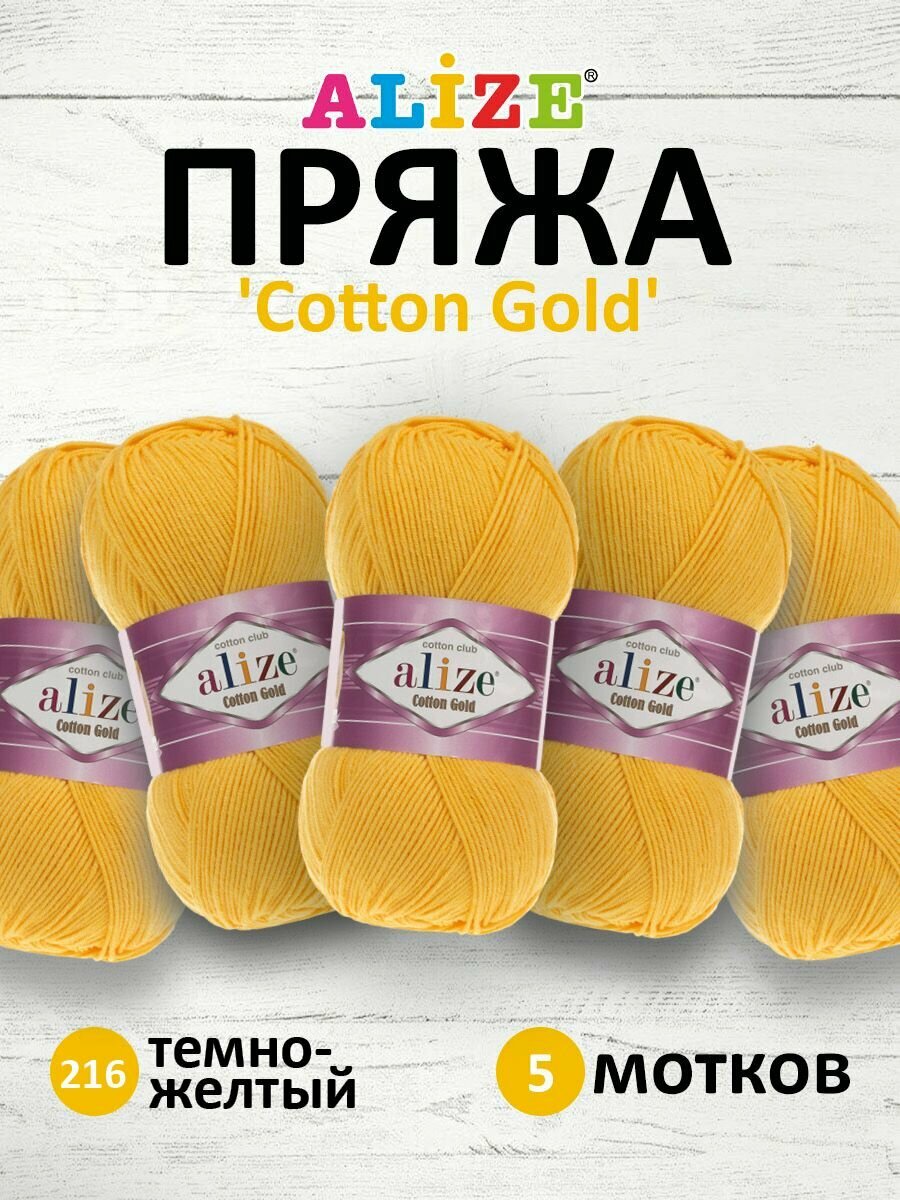 Пряжа Alize Cotton Gold (Ализе Коттон Голд) - 5 мотков 216 темно-желтый 55% хлопок, 45% акрил 330м/100г